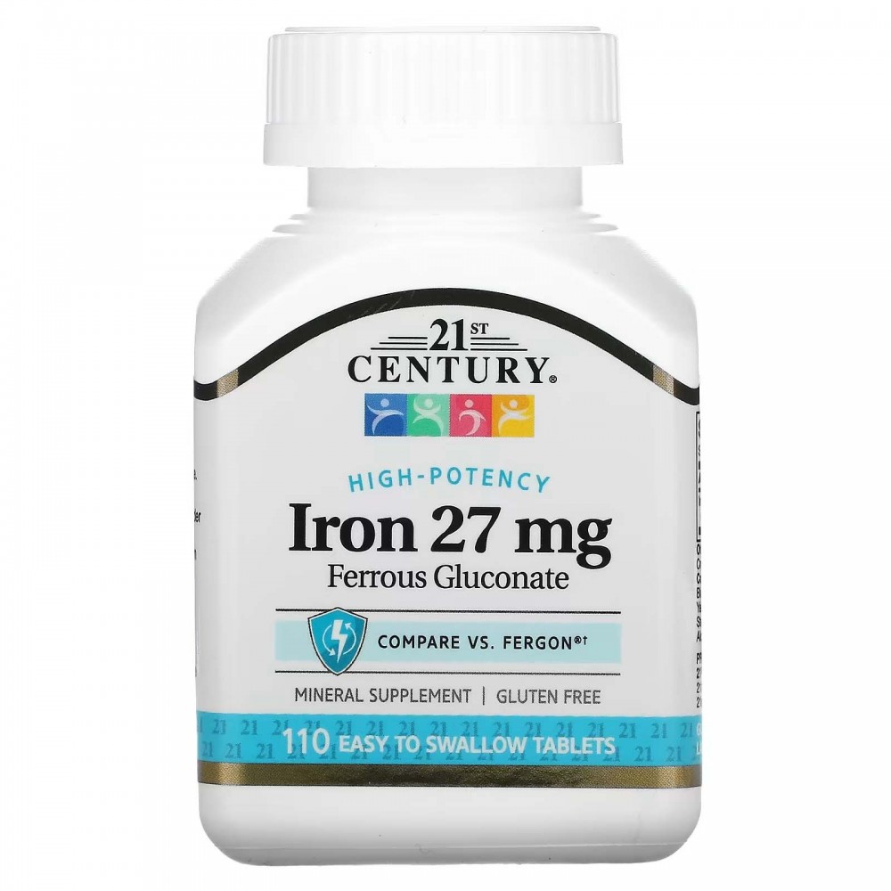21st Century, високоефективне залізо, 27 мг, 110 таблеток, які легко ковтати