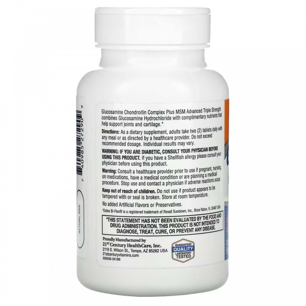 21st Century, комплекс глюкозаміну та хондроїтину із МСМ, з поліпшеною, потрійною ефективністю, 80 таблеток