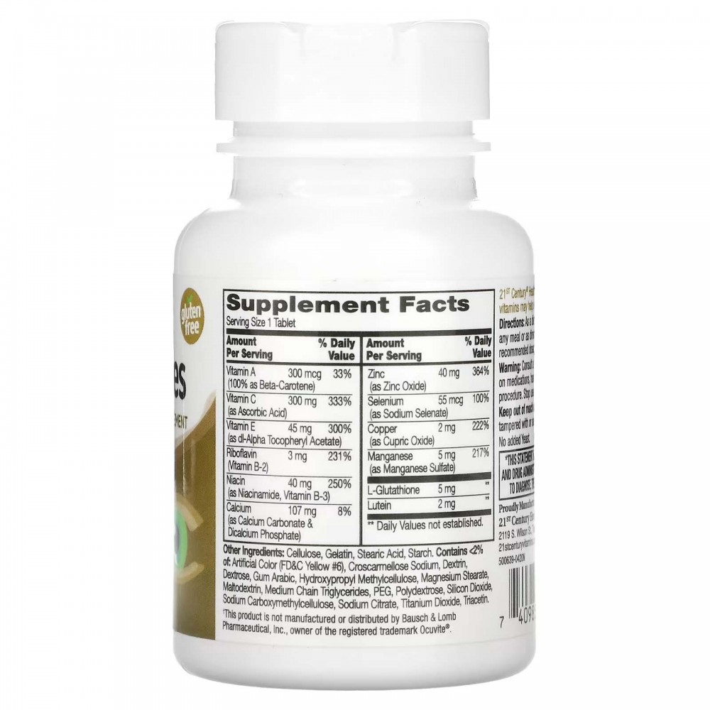 Препарат для здоров’я очей від 21st Century® з антиоксидантами, лютеїном, цинком і вітамінами групи B підтримує здоров’я очей.