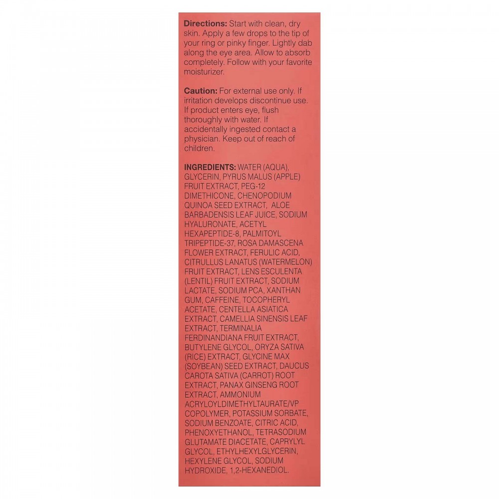 Вода (Aqua), гліцерин, екстракт яблука (Pyrus malus), ПЕГ-12 диметикон, екстракт кіноа (Chenopodium quinoa), сік із листя алое вера (Aloe barbadensis), гіалуронат натрію, ацетил гексапептид-8, пальмітоїл трипептид-37, екстракт квіток дамаської троянди (Rosa damascena), ферулова кислота, екстракт кавуна (Citrullus lanatus), екстракт сочевиці (Lens esculenta), лактат натрію, піролідонкарбонат натрію, ксантанова камедь, кофеїн, токоферилацетат, екстракт центели азіатської (Centella asiatica), екстракт листя зеленого чаю (Camellia sinensis), екстракт плодів сливи какаду (Terminalia ferdinandiana), бутиленгліколь, екстракт рису (Oryza sativa), екстракт насіння сої (Glycine max), екстракт коренеплоду моркви (Daucus carota sativa), екстракт кореня женьшеню (Panax ginseng), амонію акрилоїлдиметилтаурату / ВП сополімер, сорбат калію, бензоат натрію, лимонна кислота, феноксиетанол, діацетат глутамату тетранатрію, каприлілгліколь, етилгексилгліцерин, гексиленгліколь, гідроксид натрію, 1,2-гександіол.