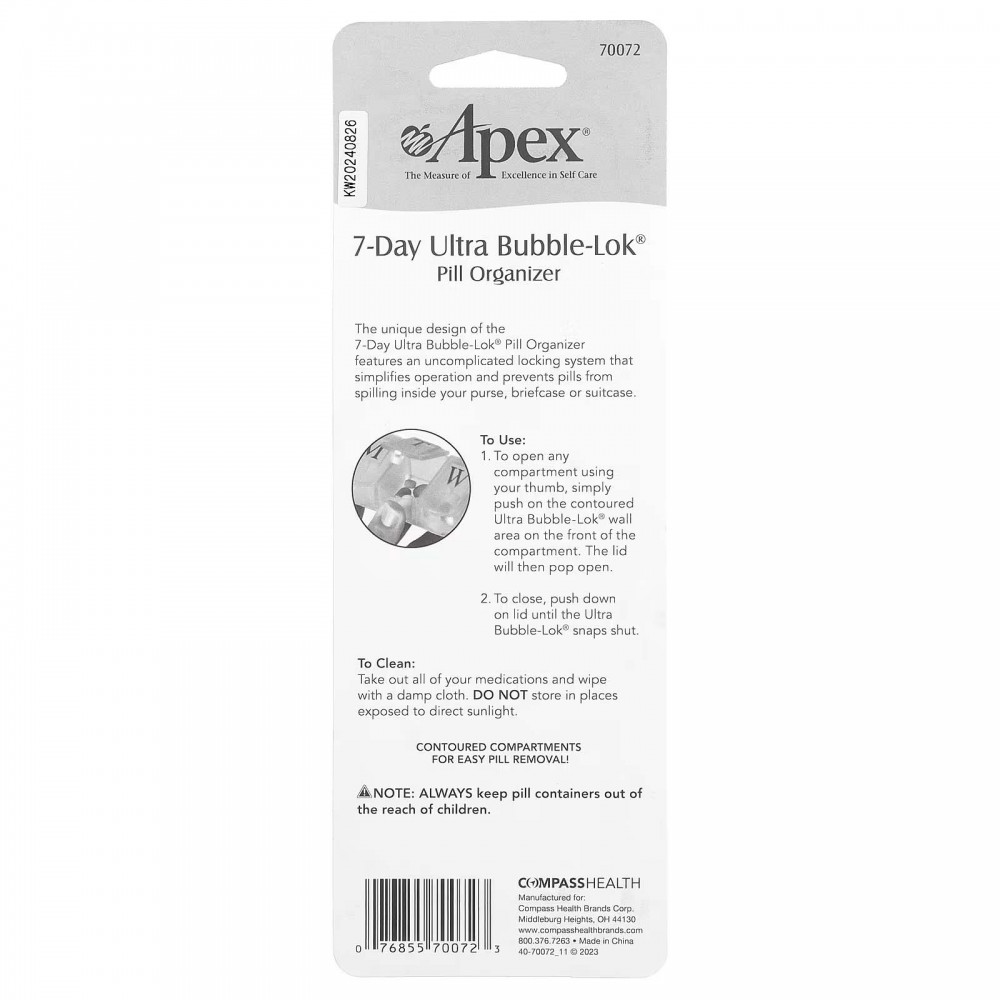 Apex, 7-денний органайзер контейнер для таблеток Ultra Bubble-Lok, 1 таблетниця