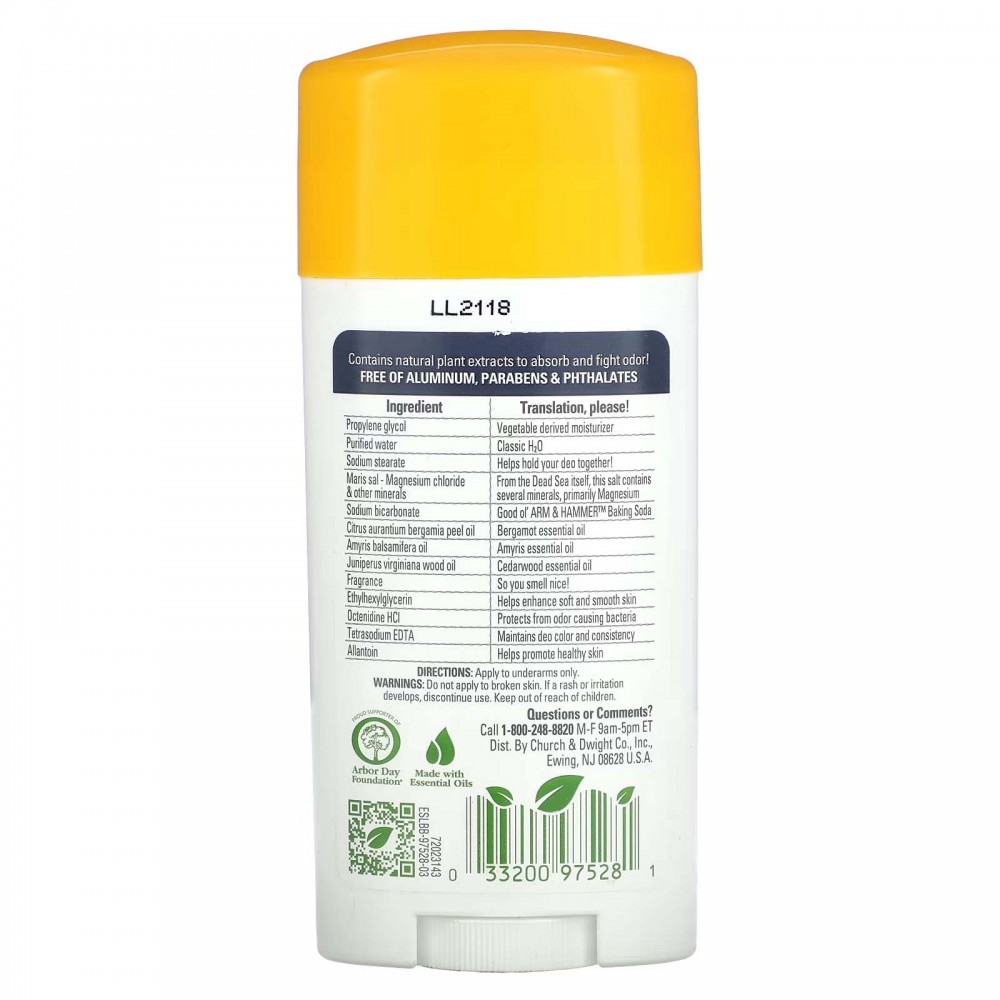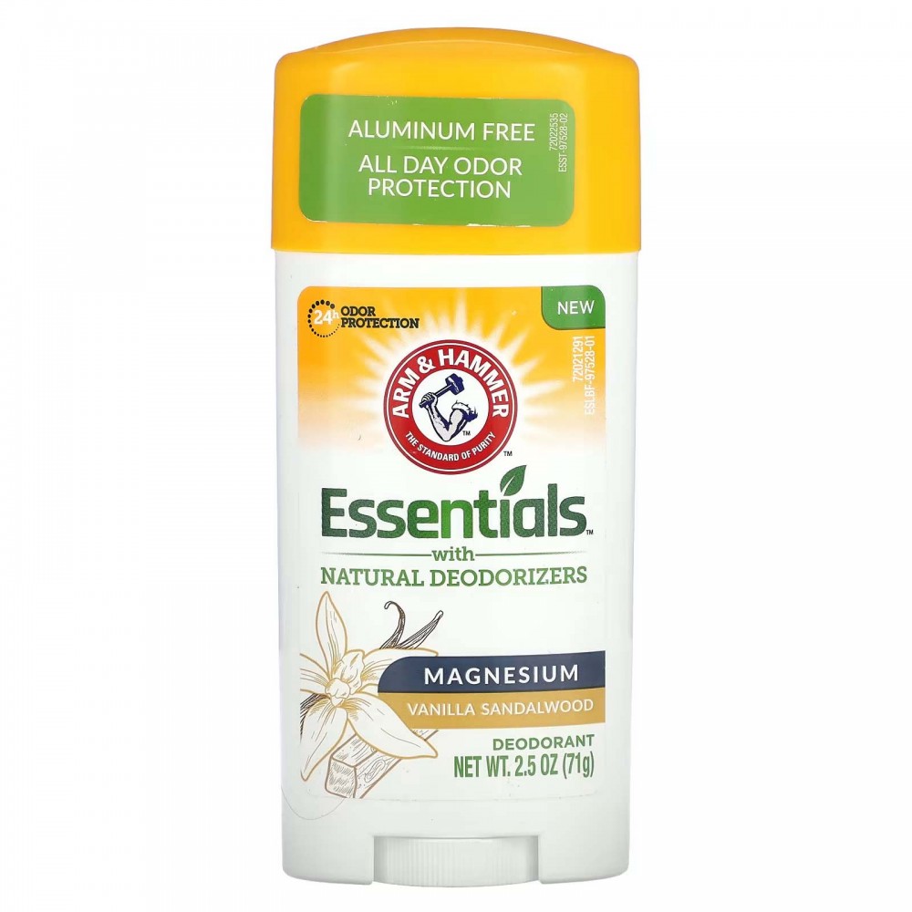 Arm & Hammer, Essentials, дезодорант із натуральними дезодорувальними речовинами, магній, ваніль і сандалове дерево, 71 г