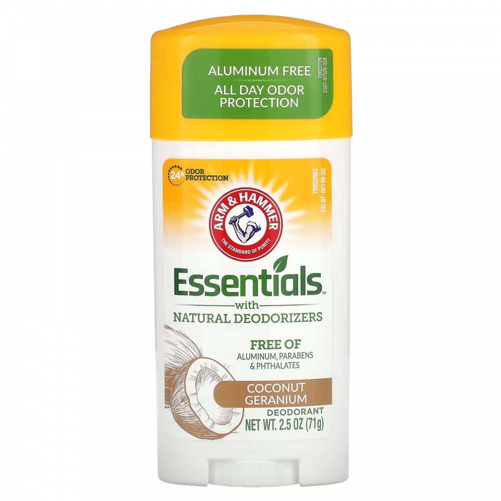 Arm & Hammer, Essentials, дезодорант із натуральними дезодорувальними речовинами, кокос і герань, 71 г