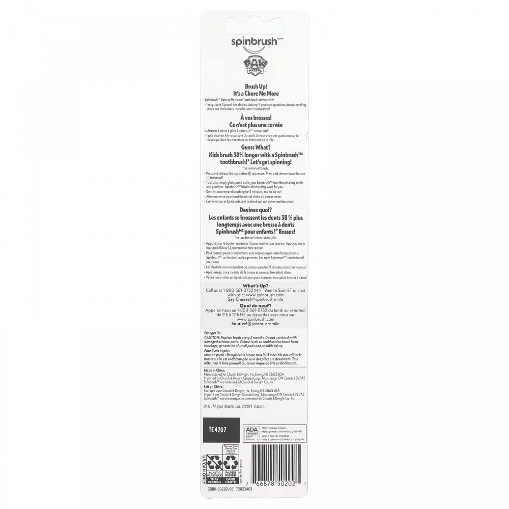 Arm & Hammer, Kid's Spinbrush, «Щенячий патруль», м'яка, 1 зубна щітка на батарейках