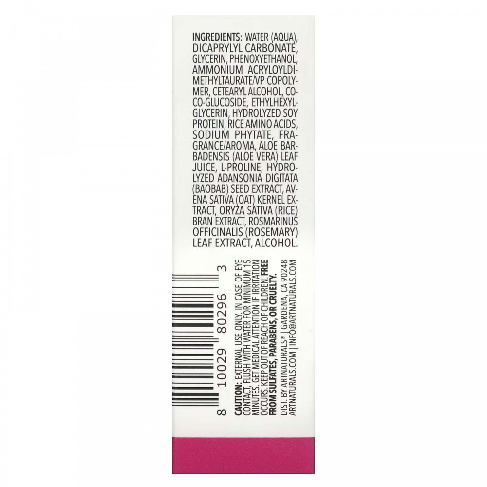 Вода (аква) дикаприліл карбонат, гліцерин, феноксиетанол, амонію акрилоїлдиметилтаурату / ВП сополімер, цетеариловий спирт, кокоглюкозид, етилгексилгліцерин, гідролізований соєвий білок, рисові амінокислоти, фітат натрію, ароматизатори, сік листя алое вера (Aloe barbadensis), L-пролін, гідролізований екстракт насіння баобабу (Adansonia digitata)., екстракт ядер вівса (Avena sativa), екстракт рисових висівок (Oryza sativa), екстракт листя розмарину (Rosmarinus officinalis), спирт.