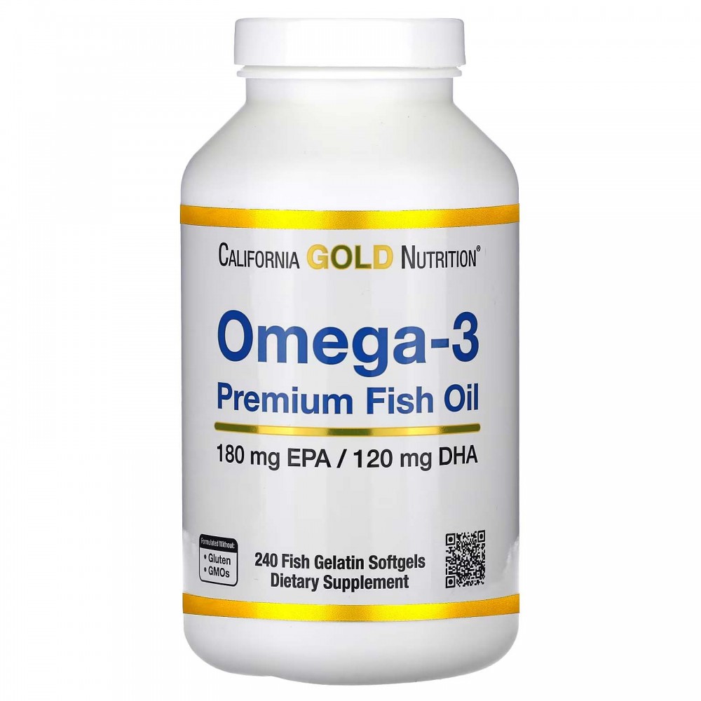 California Gold Nutrition, омега-3, рибячий жир преміальної якості, 180 мг ЕПК / 120 мг ДГК, 240 капсул із рибячого желатину
