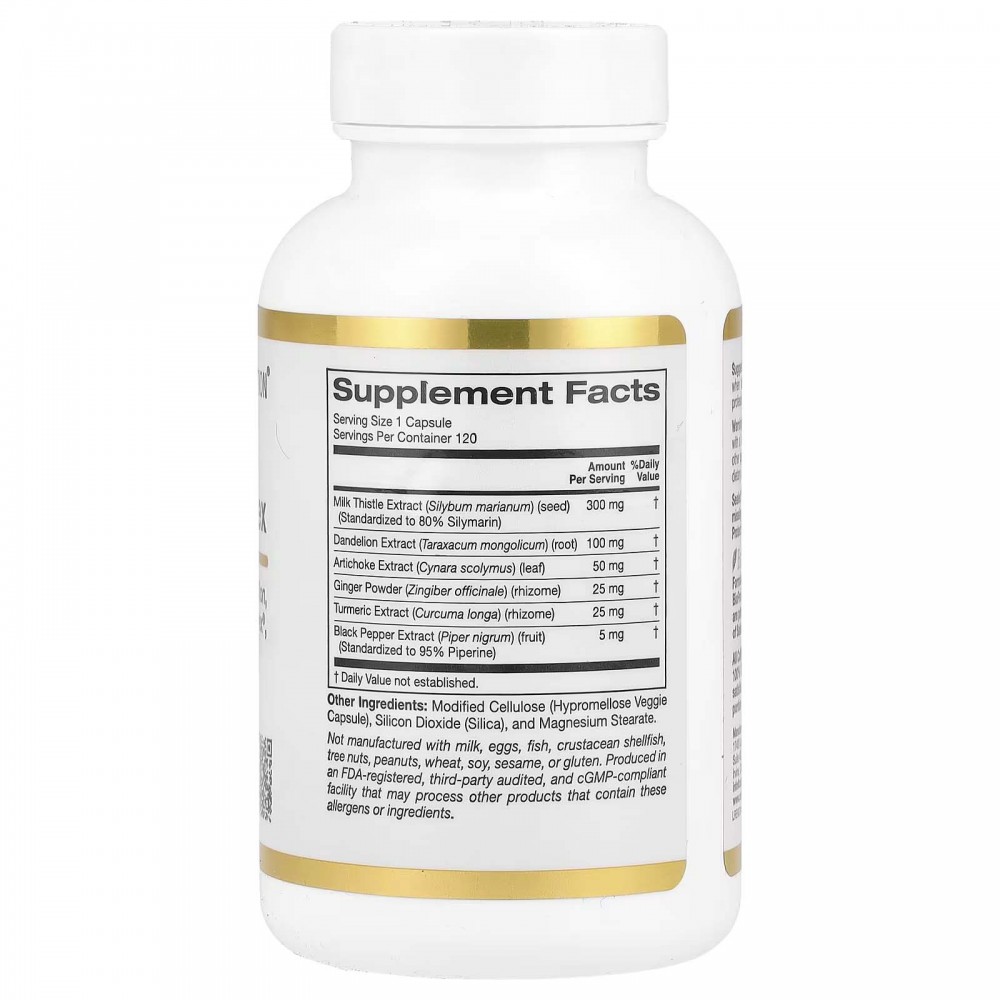 California Gold Nutrition, силімариновий комплекс для здоровя печінки з розторопшею, куркуміном, артишоком, кульбабою, імбирем і чорним перцем, 300 мг, 120 рослинних капсул