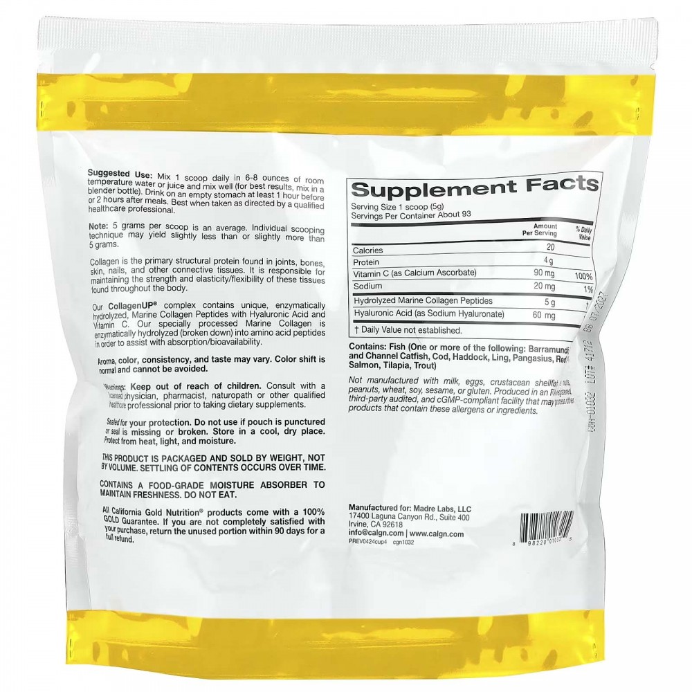 California Gold Nutrition, CollagenUP, морський гідролізований колаген, гіалуронова кислота й вітамін С, без добавок, 464 г