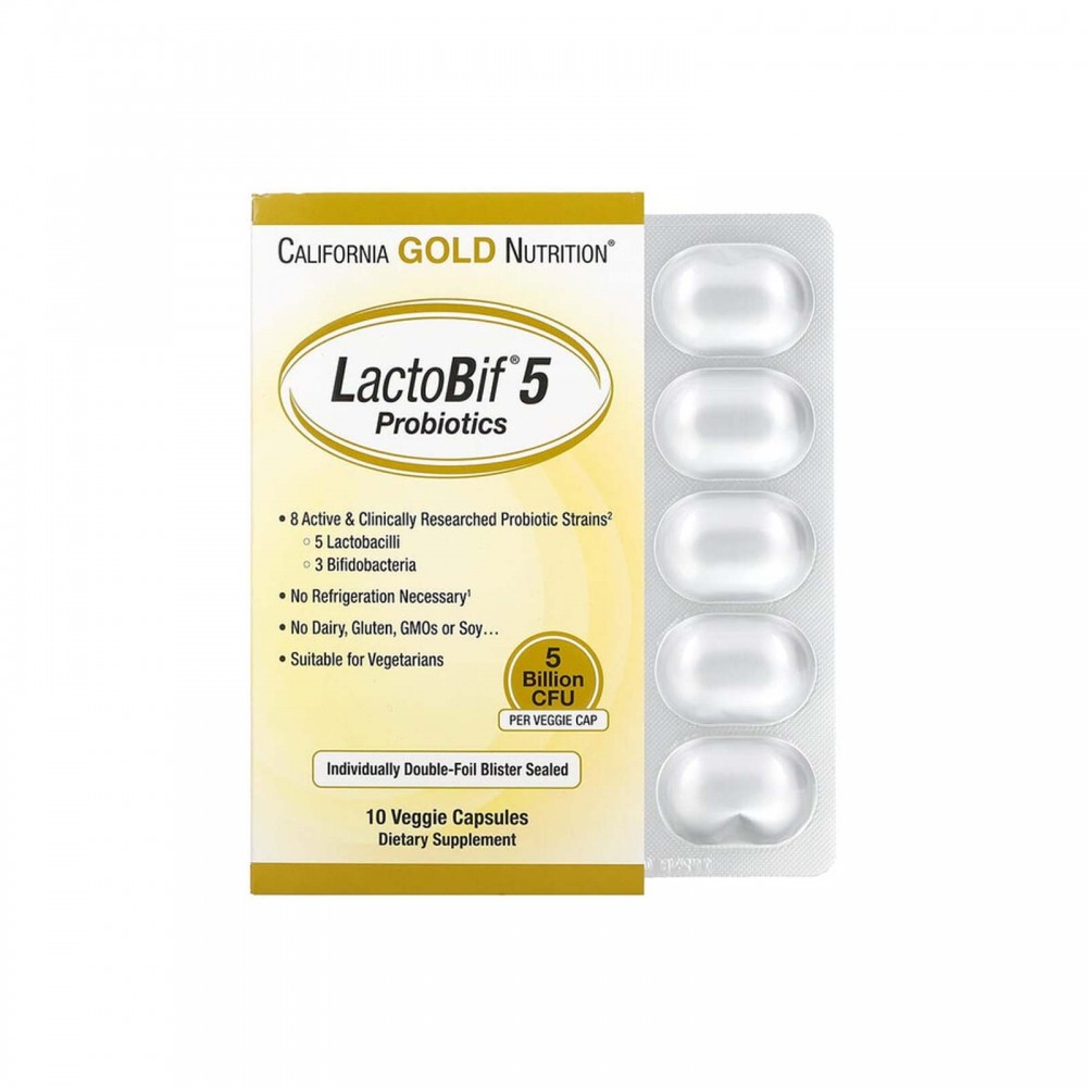 California Gold Nutrition, LactoBif, пробіотики, 5 млрд КУО, 10 рослинних капсул