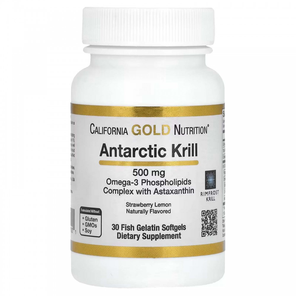 California Gold Nutrition, RIMFROST, жир антарктичного криля з астаксантином, з натуральним смаком полуниці та лимона, 500 мг, 30 капсул із рибячого желатину