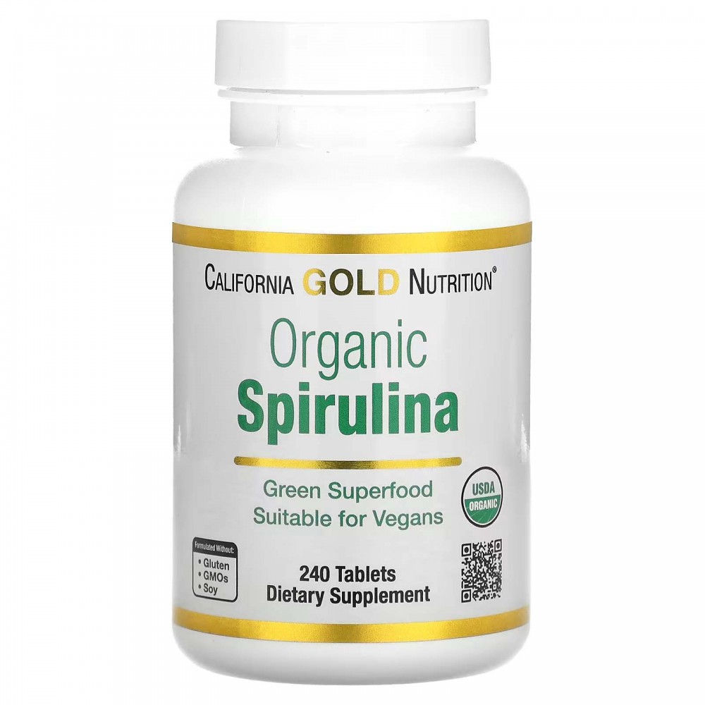 Органічна спіруліна California Gold Nutrition містить органічну спіруліну (Arthrospira platensis) у таблетках. Спіруліна, що міститься в цій добавці, має сертифікат USP і постачається Parry Nutraceuticals, лідером у галузі виробництва синьо-зелених водоростей. Продукт відповідає всім якіснім і кількісним специфікаціям контролю якості або перевищує їх. За умови приймання згідно з рекомендаціями препарат містить 80 добових порцій.