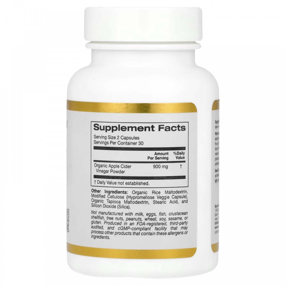 Яблучний оцет від California Gold Nutrition містить порошок органічного яблучного оцту в рослинних капсулах.