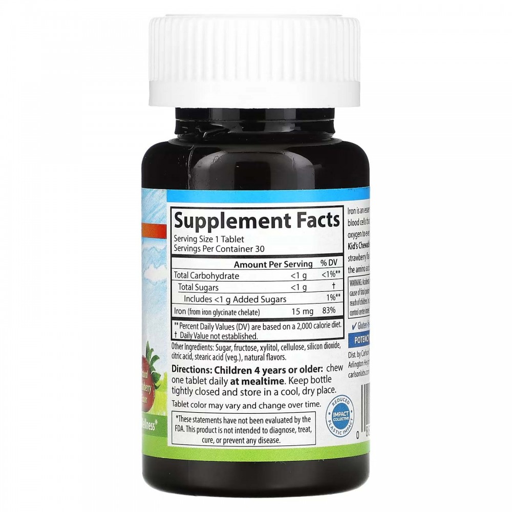 Carlson, жувальні таблетки із залізом для дітей, полуниця, 15 мг, 30 таблеток