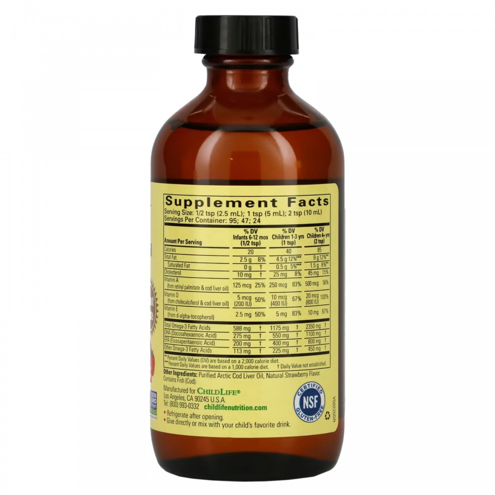 ChildLife, чистий жир з печінки арктичної тріски, зі смаком натуральної полуниці, 237 мл