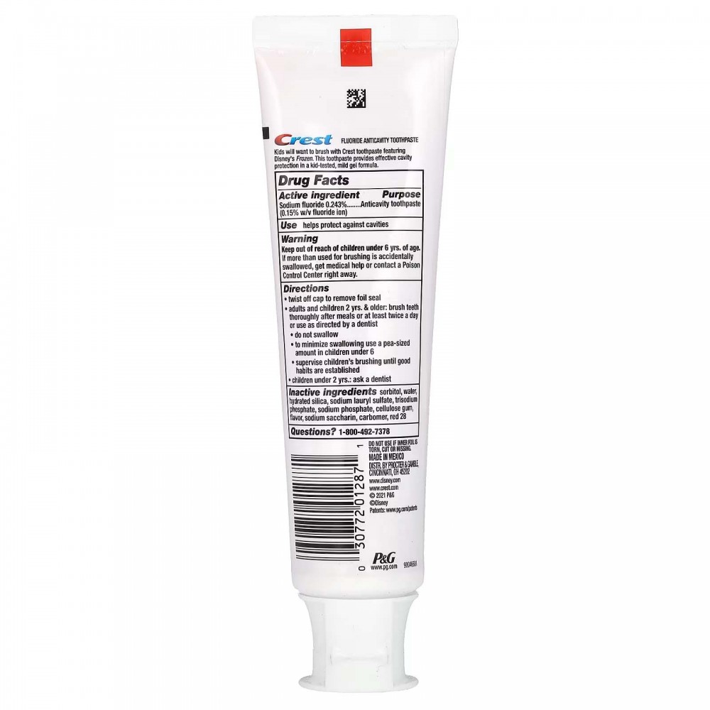 Діти захочуть чистити зуби зубною пастою Crest із добавкою Disney’s Frozen. Ця зубна паста забезпечує ефективний захист від карієсу завдяки м’якій гелевій формулі, протестованій дітьми.