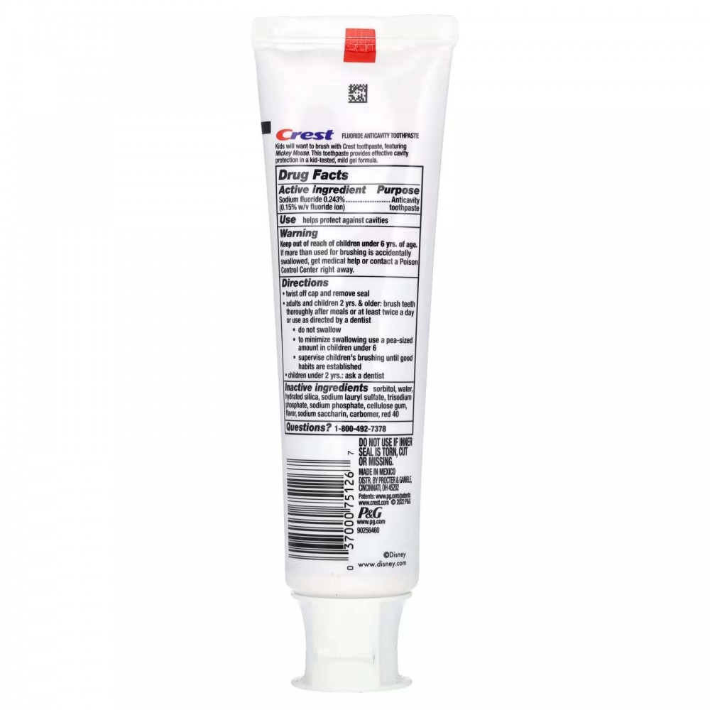 Діти захочуть чистити зуби пастою Crest із зображенням Міккі Мауса. Ця зубна паста забезпечує ефективний захист від карієсу завдяки м’якій гелевій формулі, протестованій дітьми.