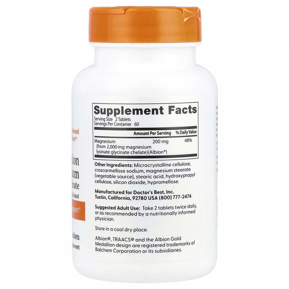 Doctor's Best, повністю хелатований легко засвоюваний магній з мікроелементами Albion, 100 мг, 120 таблеток