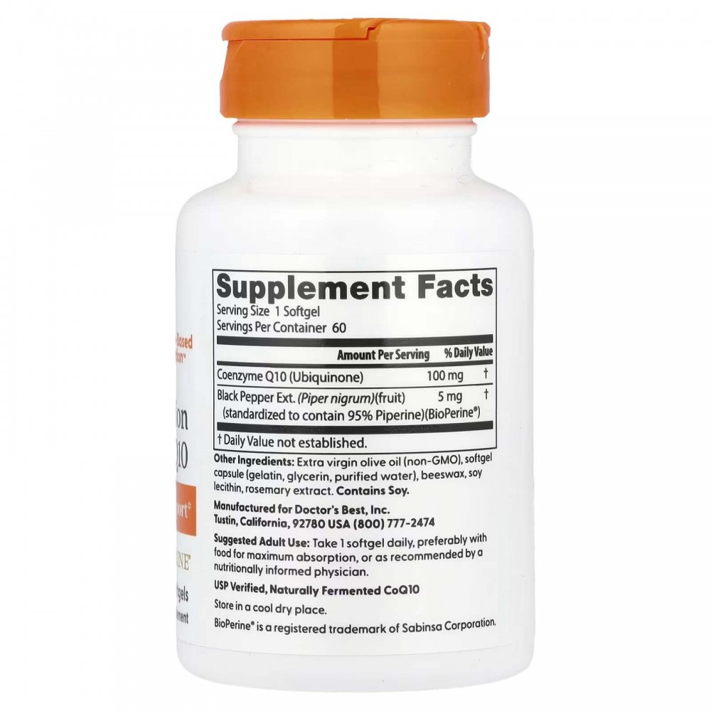 Doctor's Best, коензим Q10 з високим ступенем всмоктування з BioPerine, 100 мг, 60 капсул