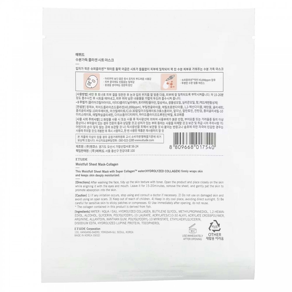 Etude, Moistfull, зволожувальна тканинна маска з колагеном, 1 шт., 25 мл
