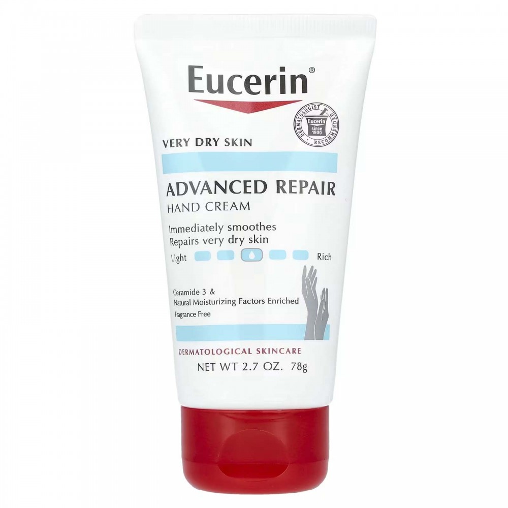 Крем для рук для інтенсивного відновлення Eucerin® — це нежирний засіб, що швидко вбирається, зволожує та відновлює дуже суху шкіру.