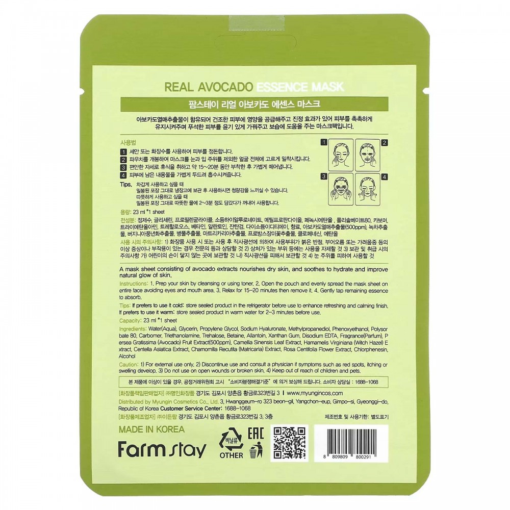 Farmstay, косметична маска з есенцією авокадо, 1 шт., 23 мл