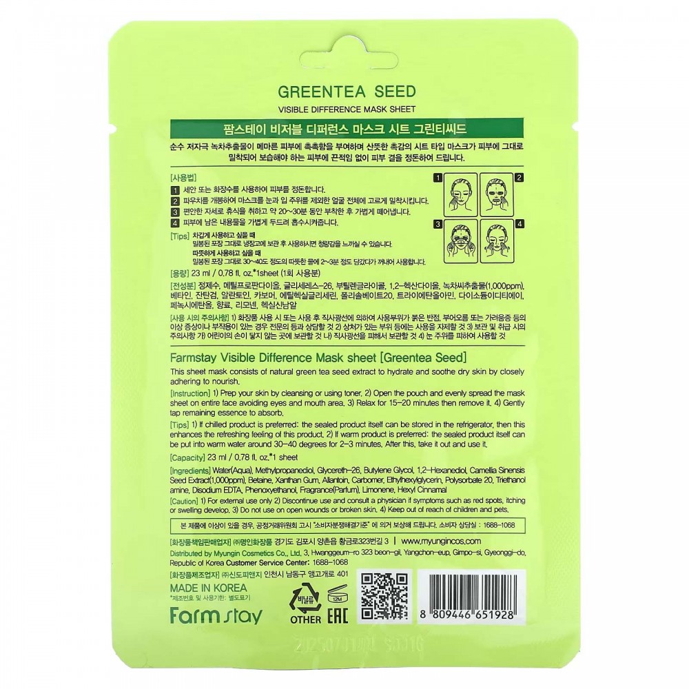 Farmstay, тканинна маска, Насіння зеленого чаю, 23 мл