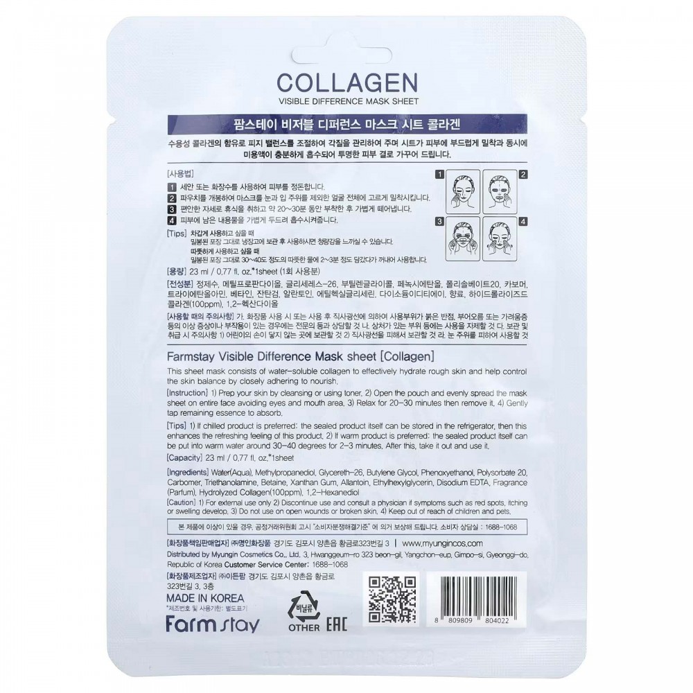 Farmstay, косметична маска з колагеном, Visible Difference, 1 шт., 23 мл