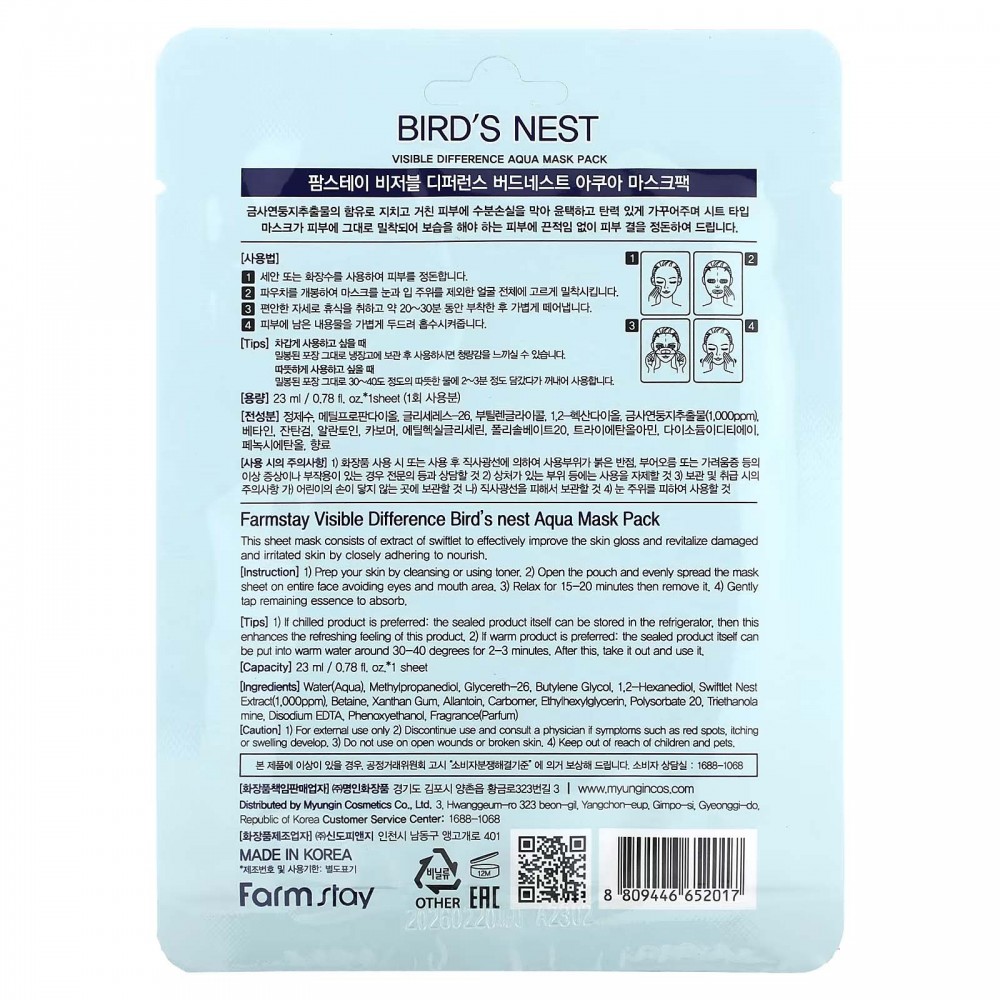 Farmstay, Visible Difference, очищувальна маска Aqua Beauty, Bird's Nest, 1 шт., 23 мл