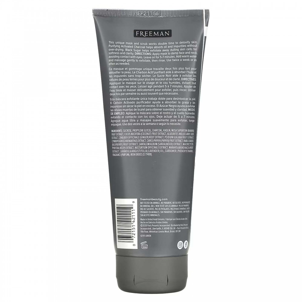 Freeman Beauty, Feeling Beautiful, очищувальна гель-маска + скраб для краси, деревне вугілля + чорний цукор, 175 мл (6 рідк. унцій)