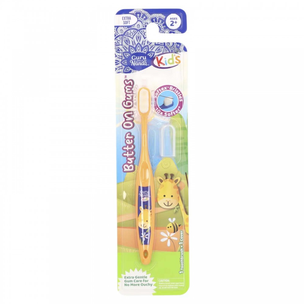 GuruNanda, дитяча зубна щітка зі щетиною, для дітей від 2 років, дуже мяка, зі смаком жирафа, 1 шт. + 1 чохол