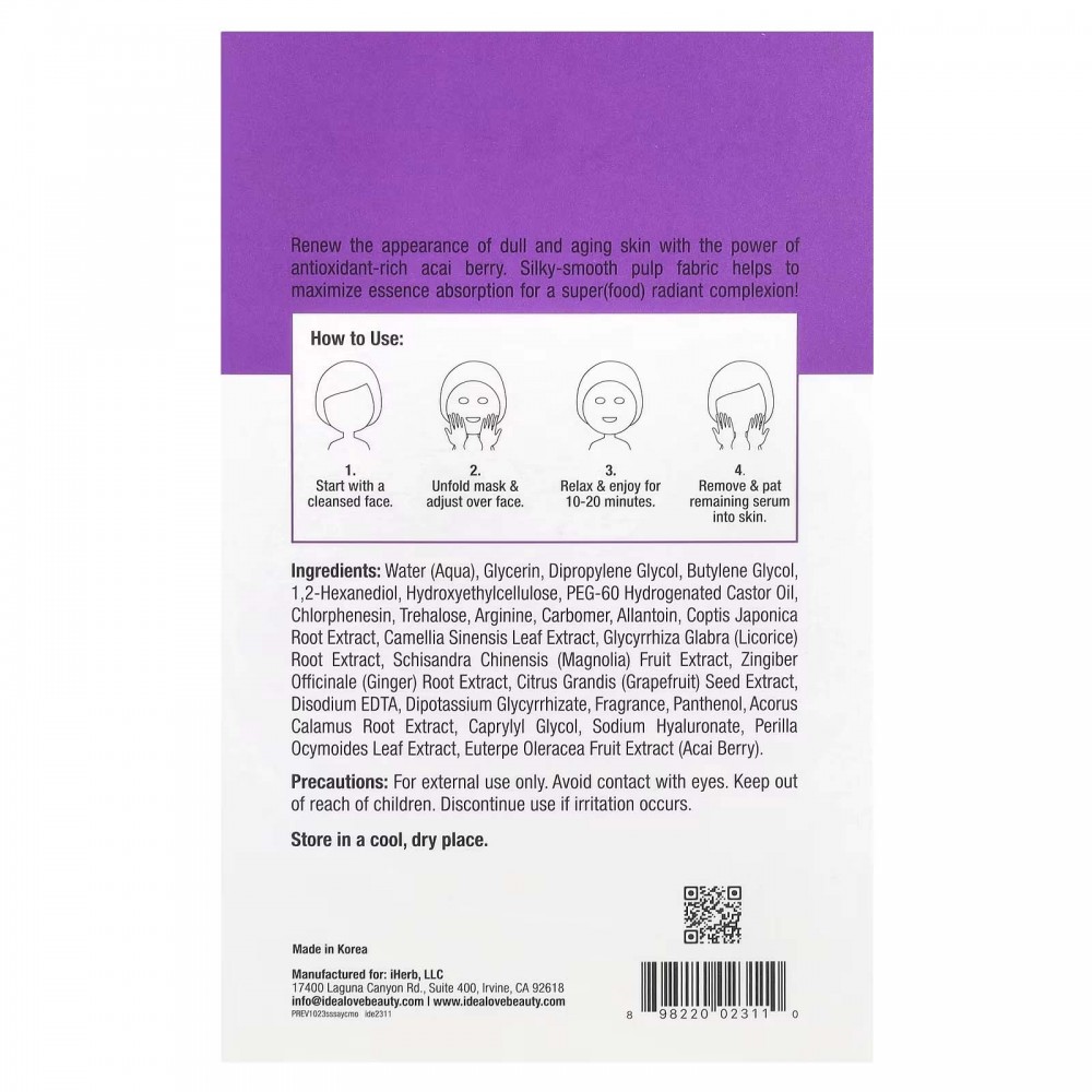 Idealove, Superfood Skin Savior, маска із суперфудами, асаї, по 20 мл