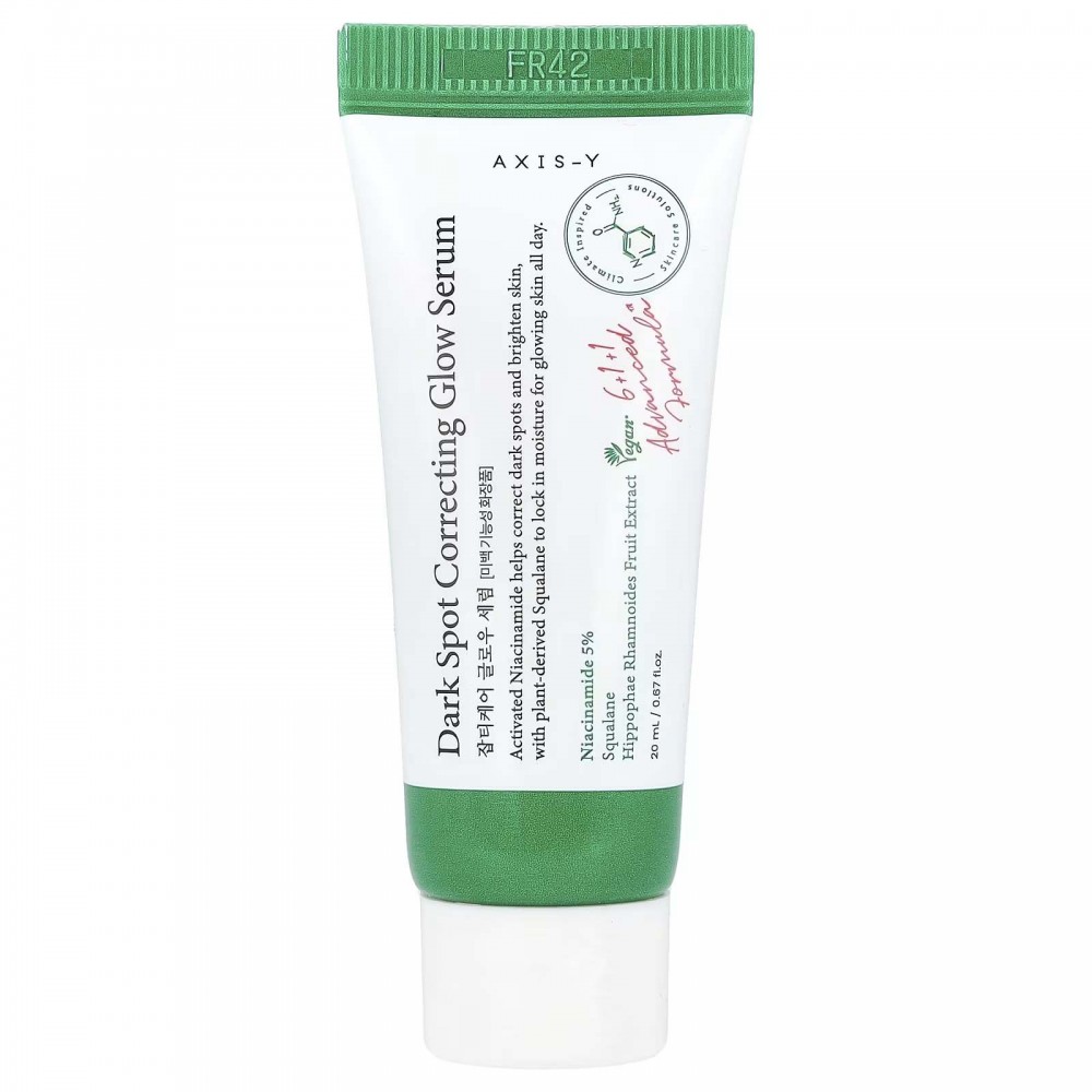 Сироватка для корекції темних плям Axis-Y: Вода, гліцерин, нікотинамід, гіалуронат натрію, пропандіол, еритритол, бутиленгліколь, сквалан, екстракт рисових висівок (Oryza sativa), екстракт календули (Calendula officin alis)., екстракт плодів папаї (Carica papaya), екстракт плодів обліпихи (Hippophae rhamnoides)., екстракт плодів ацероли (Malpighia glabr a)., полігліцерил-10 лаурат, хлорфенезин, аргінін, етилгексилгліцерин, карбомер, глутатіон, 1,2-гександіол, гідроксипропіл, циклодекстрин, двонатрієва ЕДТК, гідроксиетилцелюлоза, алантоїн, олія з листя розмарину (Rosmarinus officinalis).