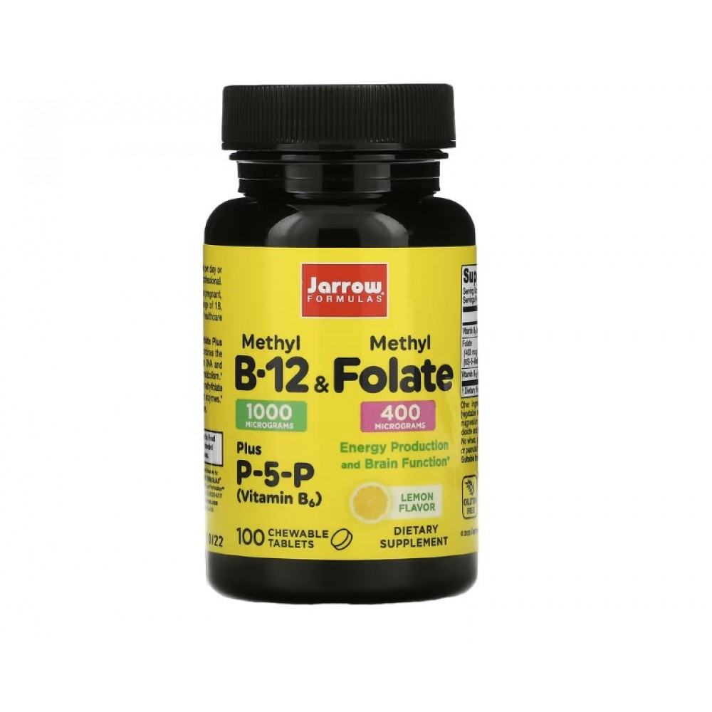 • Jarrow Formulas, метил В12 і метилфолат, лимон, 100 жувальних таблеток