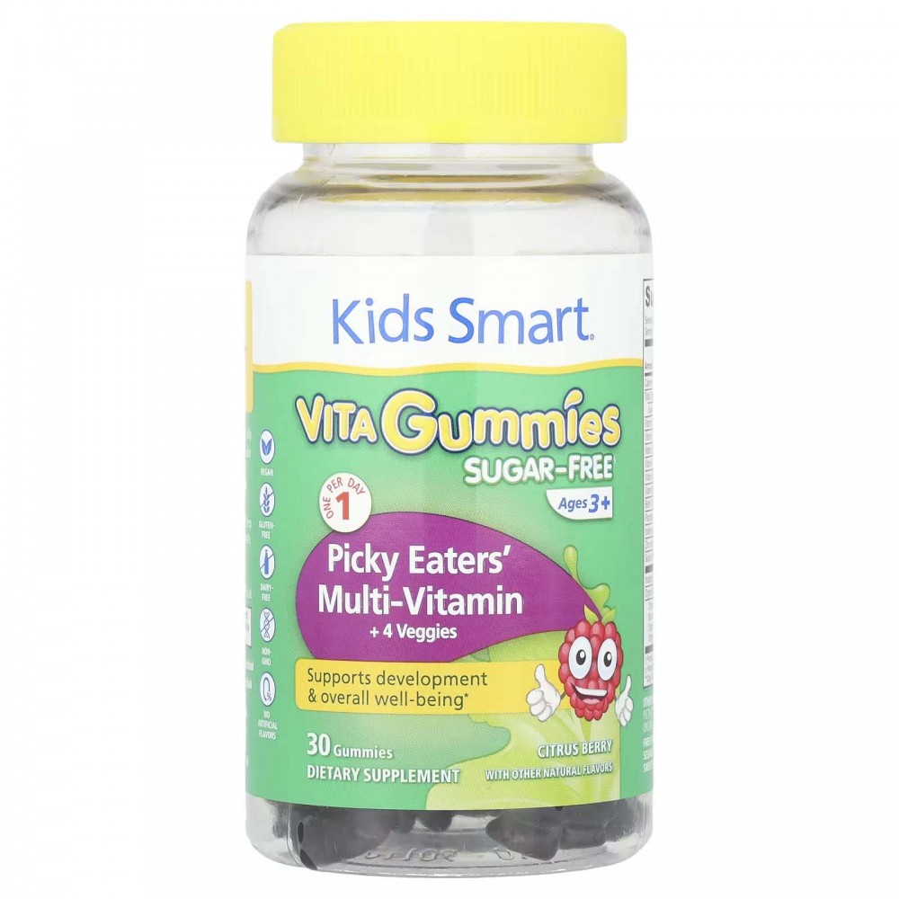 Kids Smart, Kids Smart® Vita, мультивітаміни + 4 овочі для дітей віком від 3 років, цитрусові й ягоди, 30 жувальних таблеток