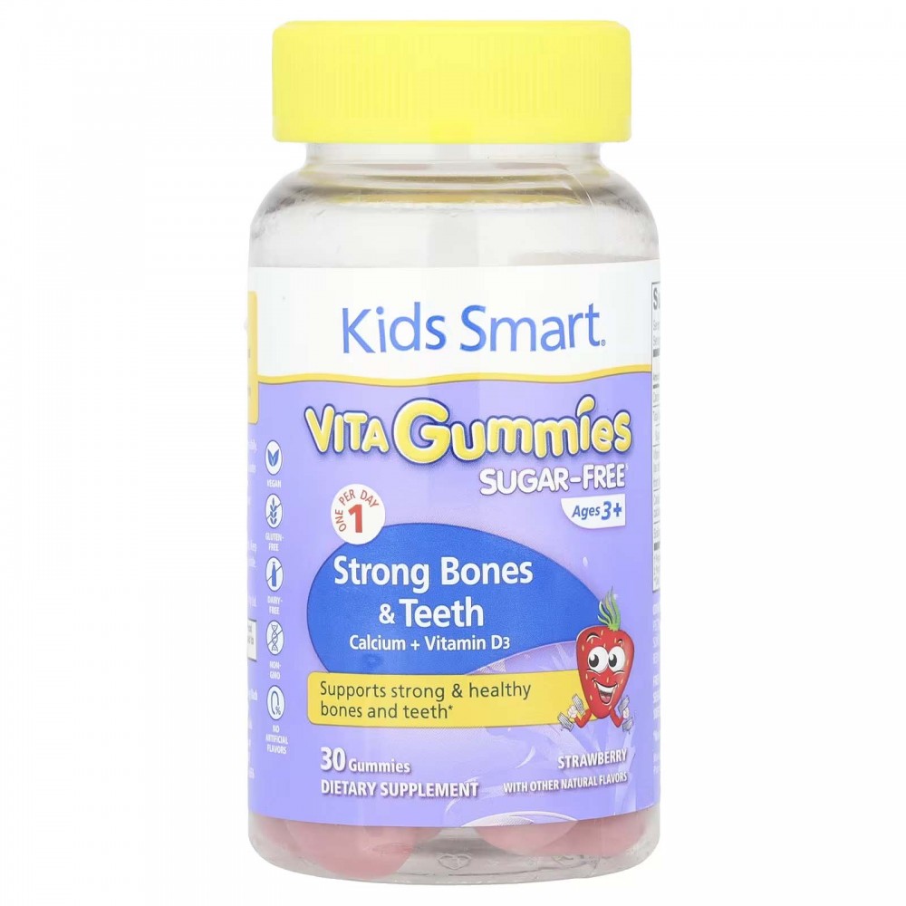 Kids Smart, Kids Smart®, Vita жувальні таблетки, для зміцнення кісток і зубів, кальцій і вітамін D3, для дітей віком від 3 років, зі смаком полуниці, 30 жувальних таблеток