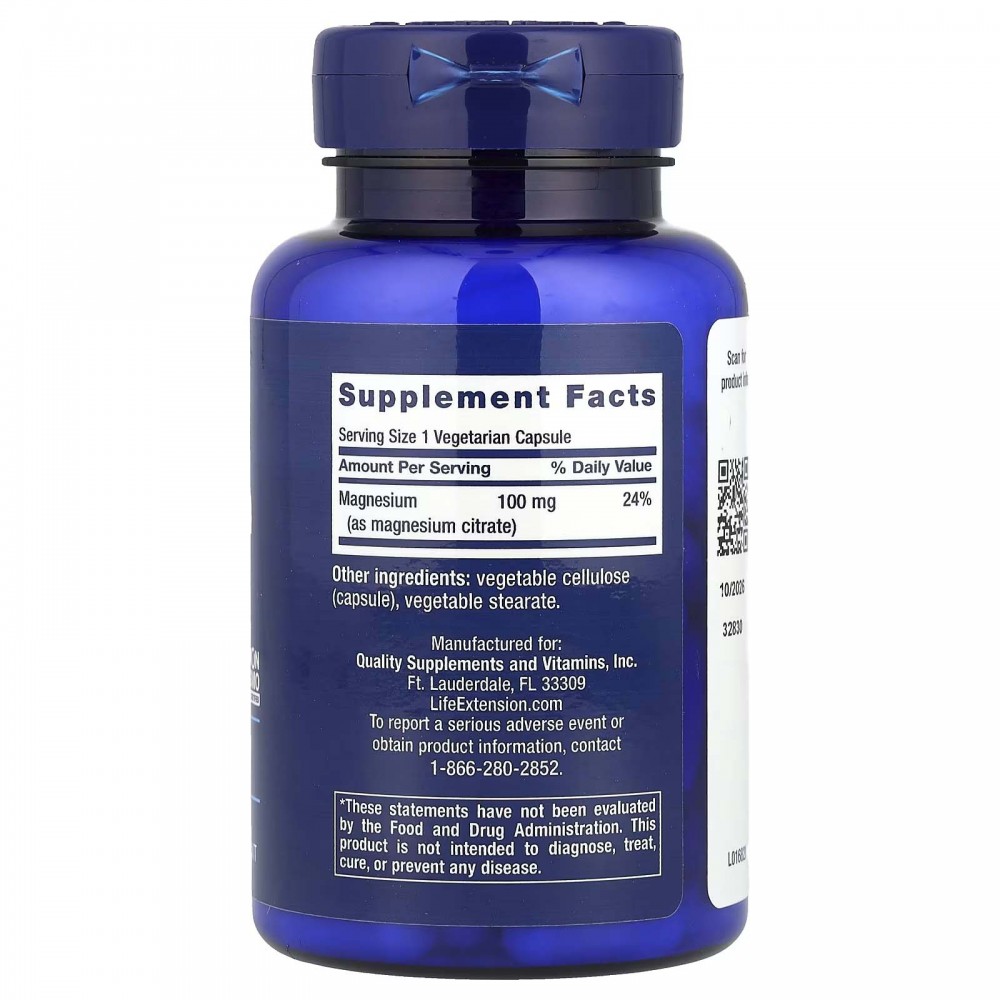 Life Extension, магній (цитрат), 100 мг, 100 вегетаріанських капсул