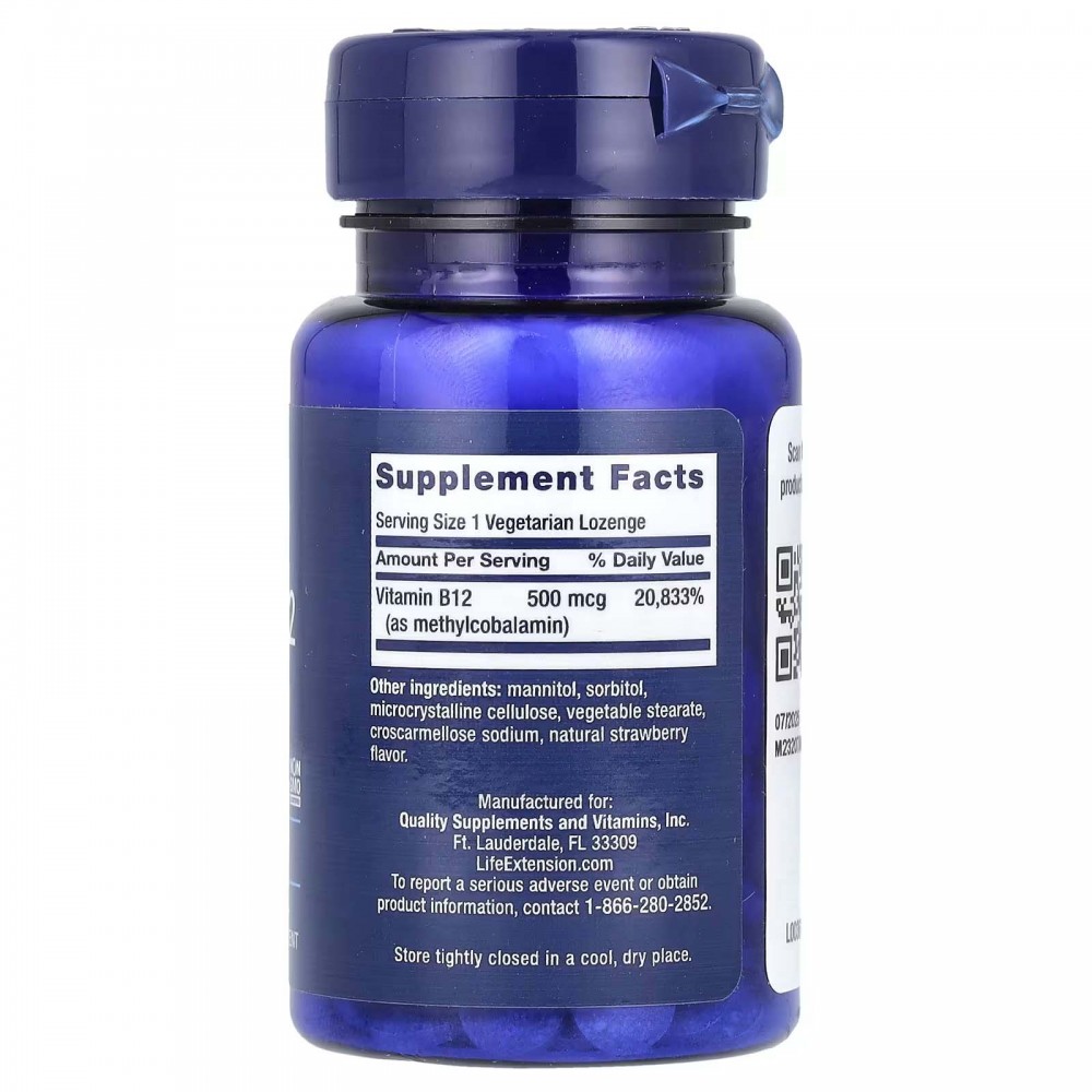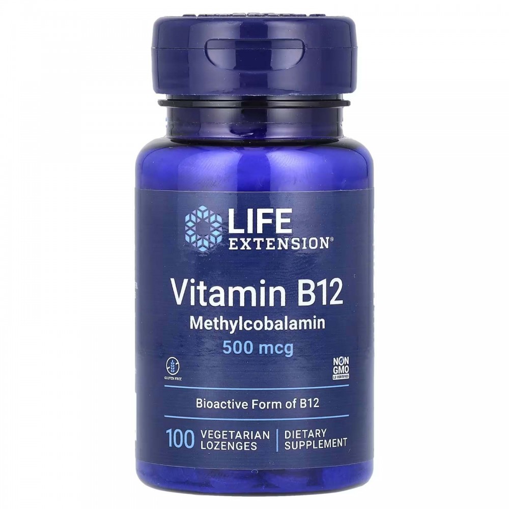 Life Extension, вітамін В12, метилкобаламін, 500 мкг, 100 вегетаріанських льодяників