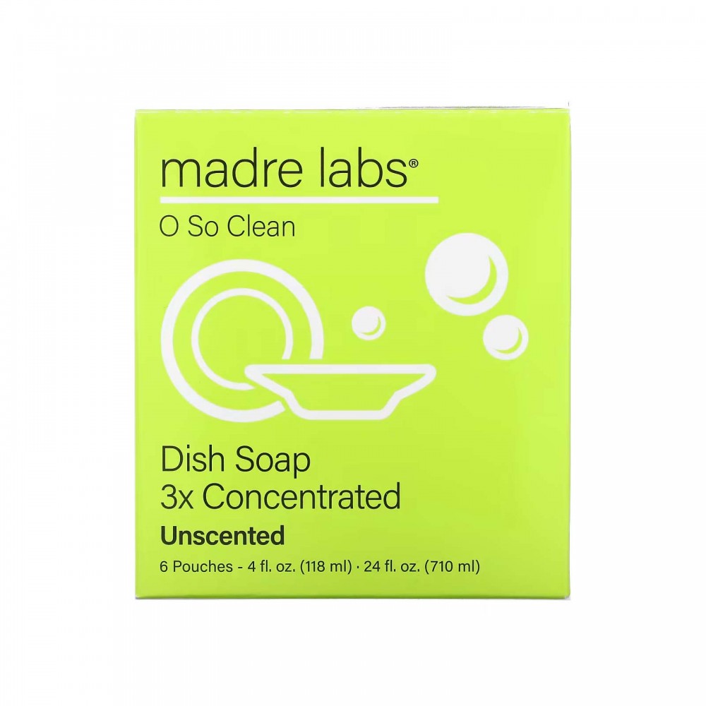 Madre Labs, засіб для миття посуду, потрійний концентрат, без запаху, 6 пакетиків, по 118 мл