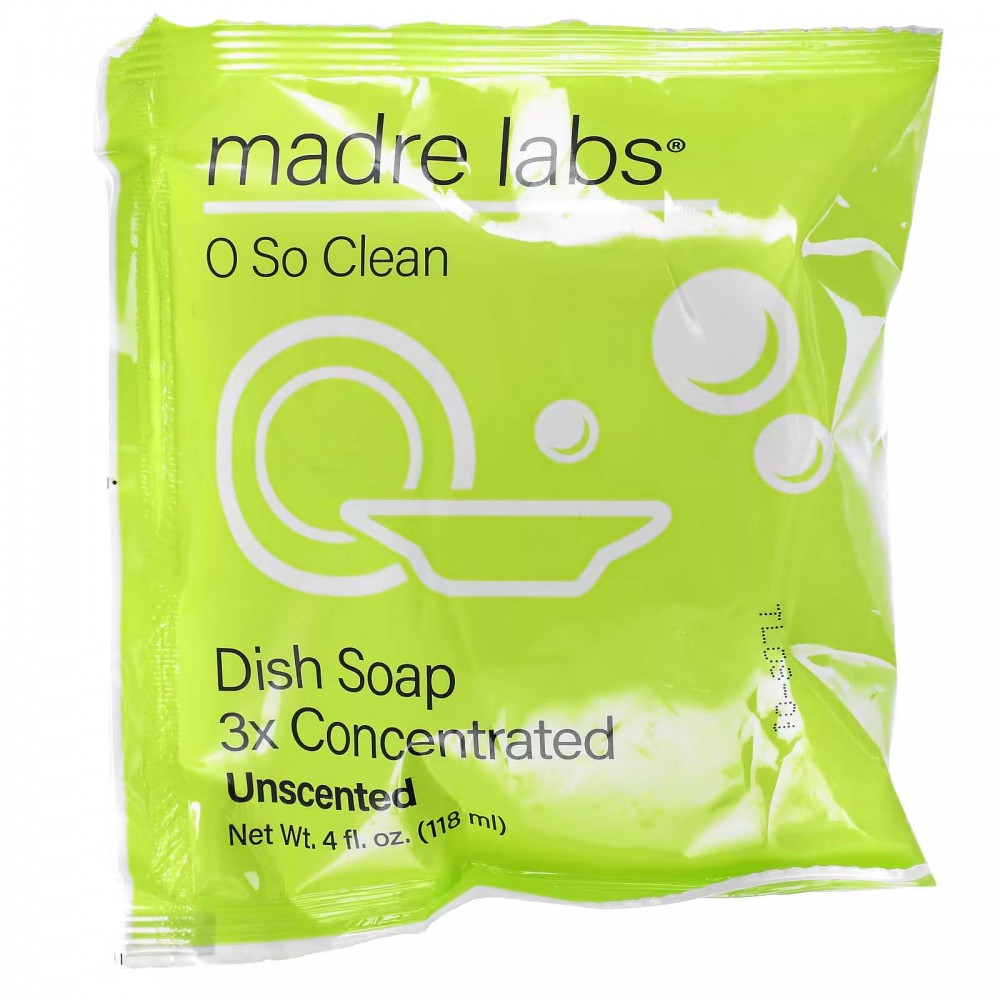 Засіб для миття посуду O So Clean від Madre LabsБез ароматизаторівПотрійна концентраціяЕкологічно безпечні пакетикиБезпечний для систем знезараження продуктБез фталатівБез парабенівБез барвниківЕтични...