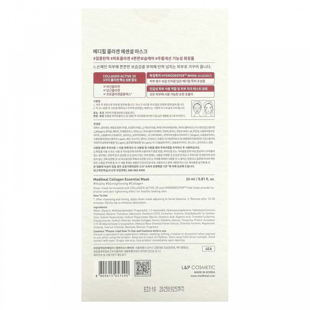MEDIHEAL, косметична маска з колагеном, 4 шт., 24 мл
