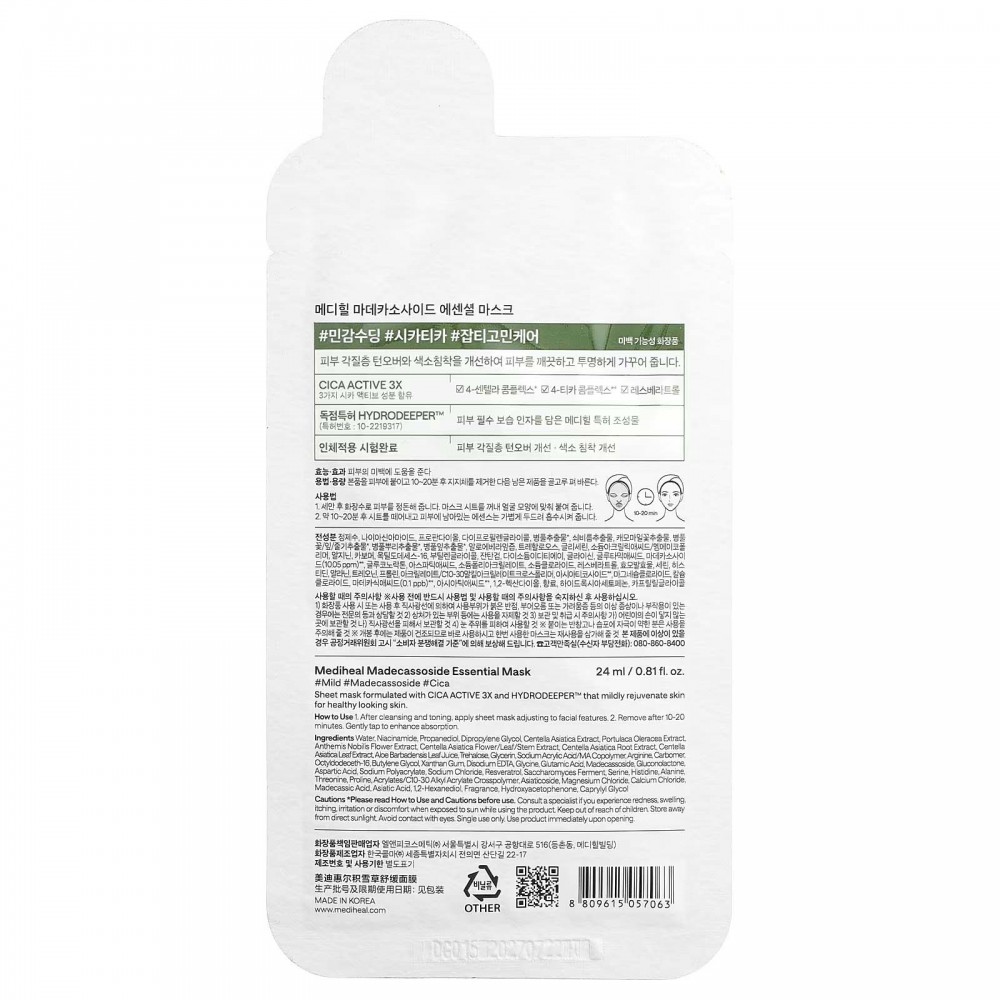 MEDIHEAL, Madecassoside, незамінна маска для краси, 1 шт., 24 мл