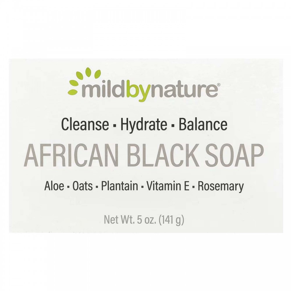 Африканське чорне мило Mild By NatureОчищає, відновлює баланс, зволожуєАлое, овес, подорожник, вітамін E, розмаринСтворює густу піну, дбайливо очищує, легко змиваєтьсяМило Mild By Nature містить премі...