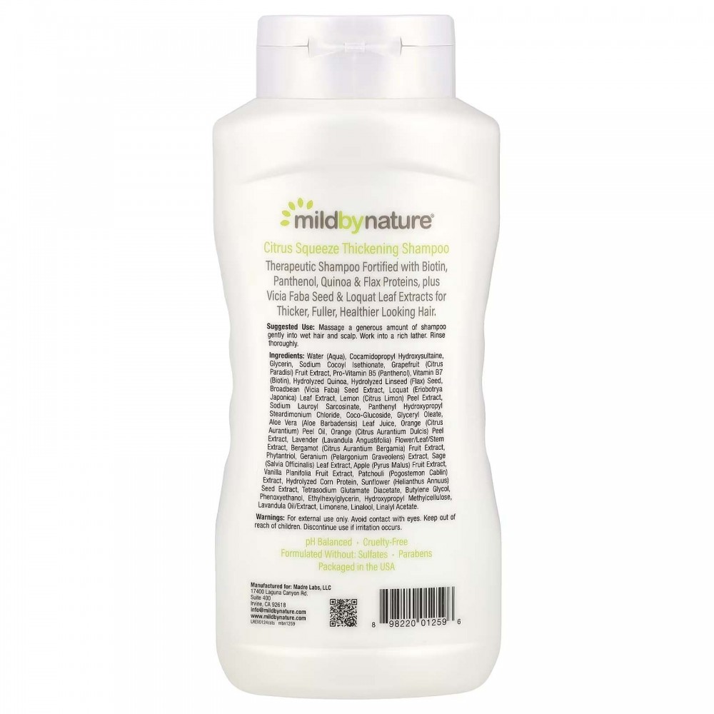Mild By Nature, Madre Labs, шампунь із комплексом вітамінів групи В і біотином для густоти волосся, без сульфатів, цитрусові, 473 мл