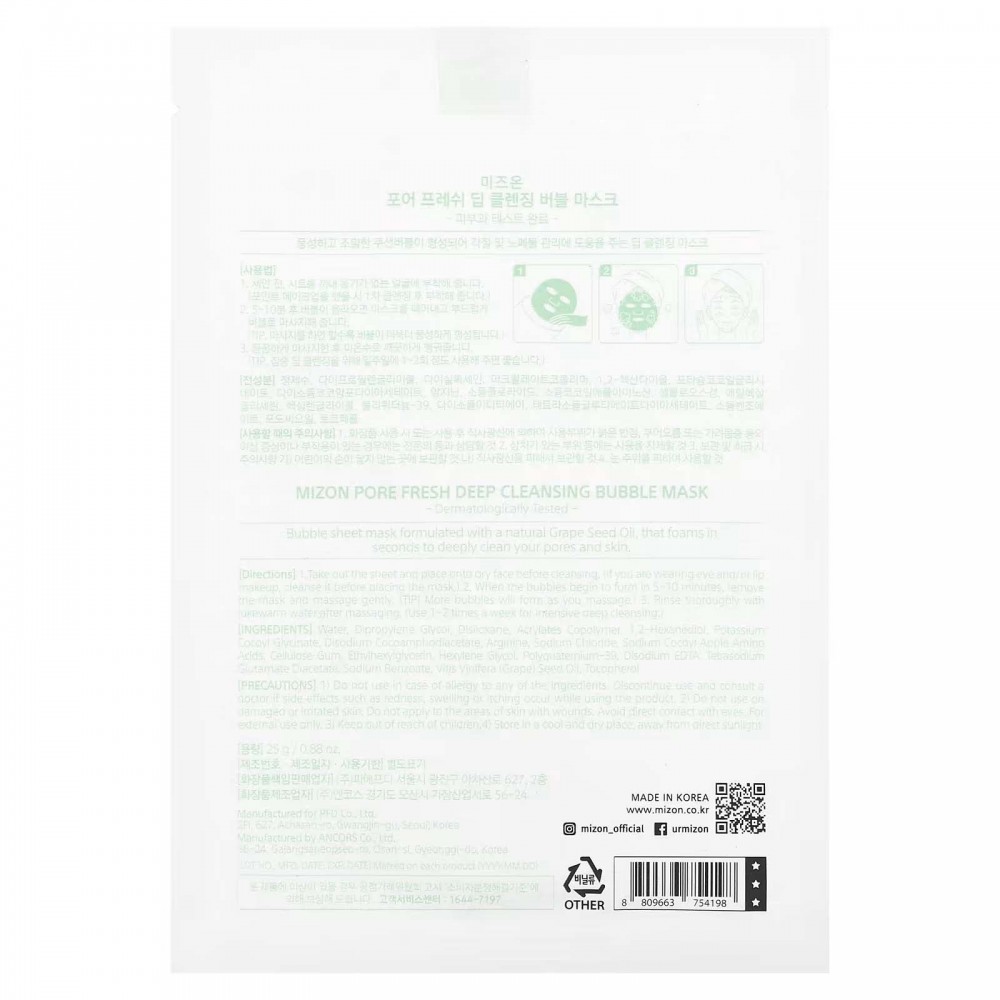Mizon, Pore Fresh, глибоко очищувальна маска з бульбашками, 1 шт., 25 г
