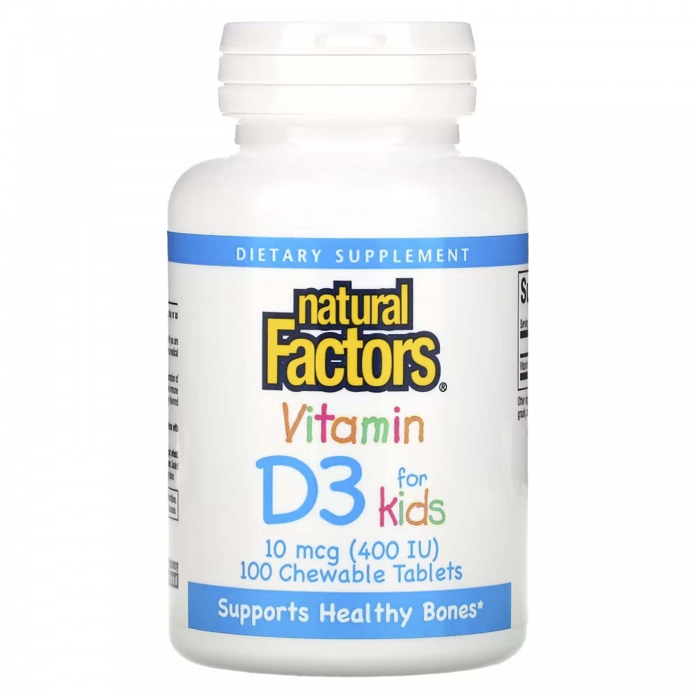 Natural Factors, вітамін Д3, зі смаком полуниці, 400 МО, 100 жувальних таблеток (Основний склад) (Основний склад)
