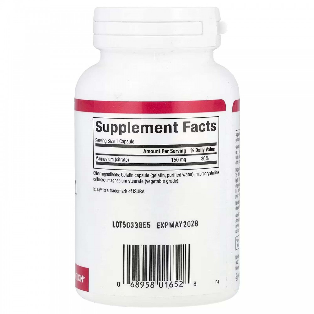 Цитрат магнію в капсулах, які легко ковтати. Цитратна форма надзвичайно добре засвоюється й переноситься організмом, а магній необхідний для сотень ферментних реакцій в організмі та нормальної роботи серця. Він необхідний для синтезу білка, вуглеводного обміну, правильної роботи м’язів та сприяє засвоєнню кальцію та калію.