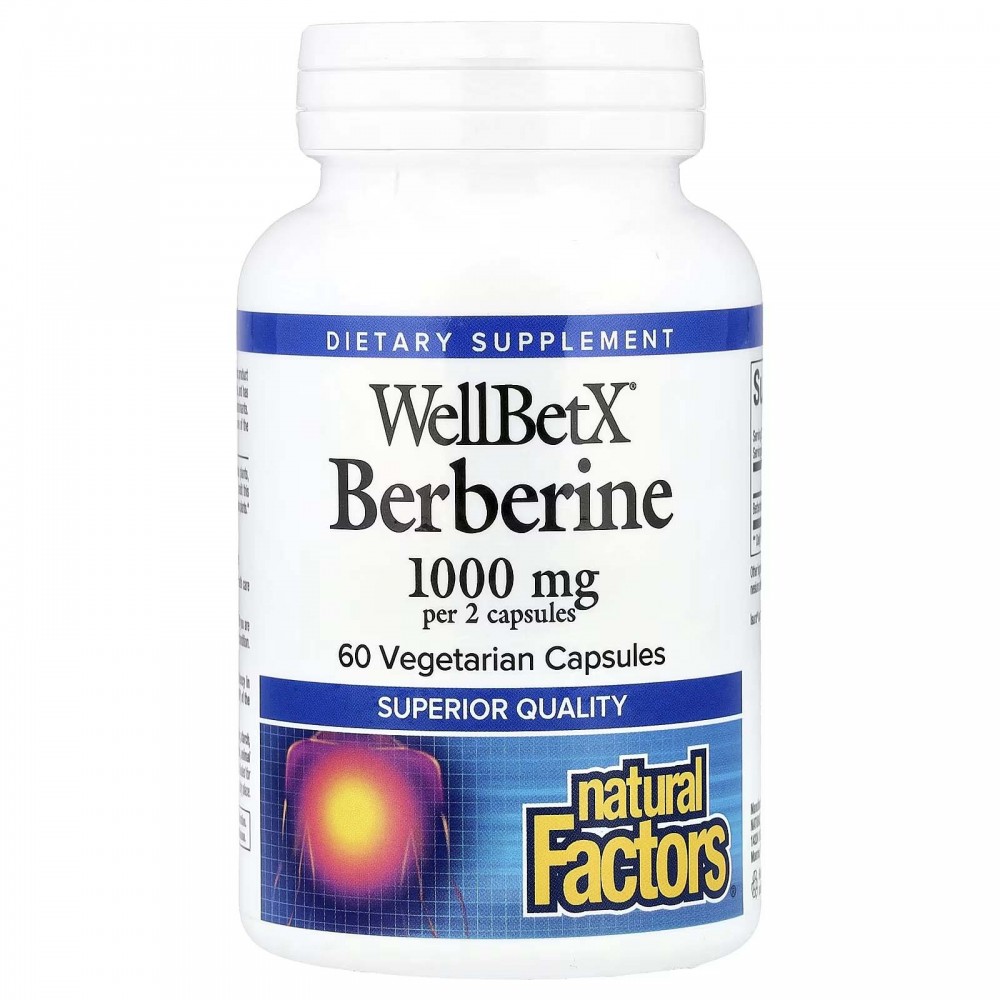 Natural Factors, WellBetX, берберин, 500 мг, 60 вегетаріанських капсул