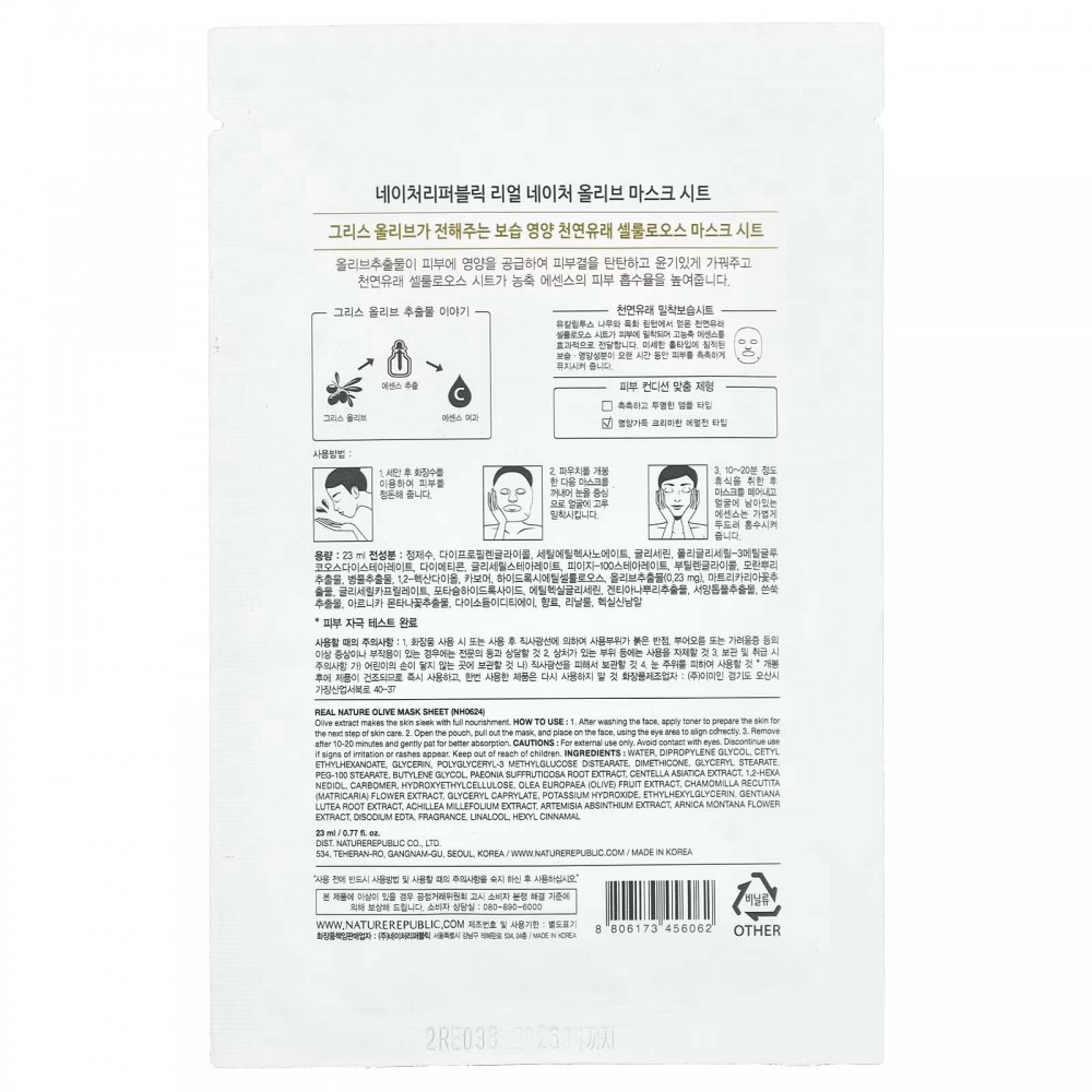 Nature Republic, Тканинна маска від Real Nature Beauty, оливковий, 1 шт., 23 мл