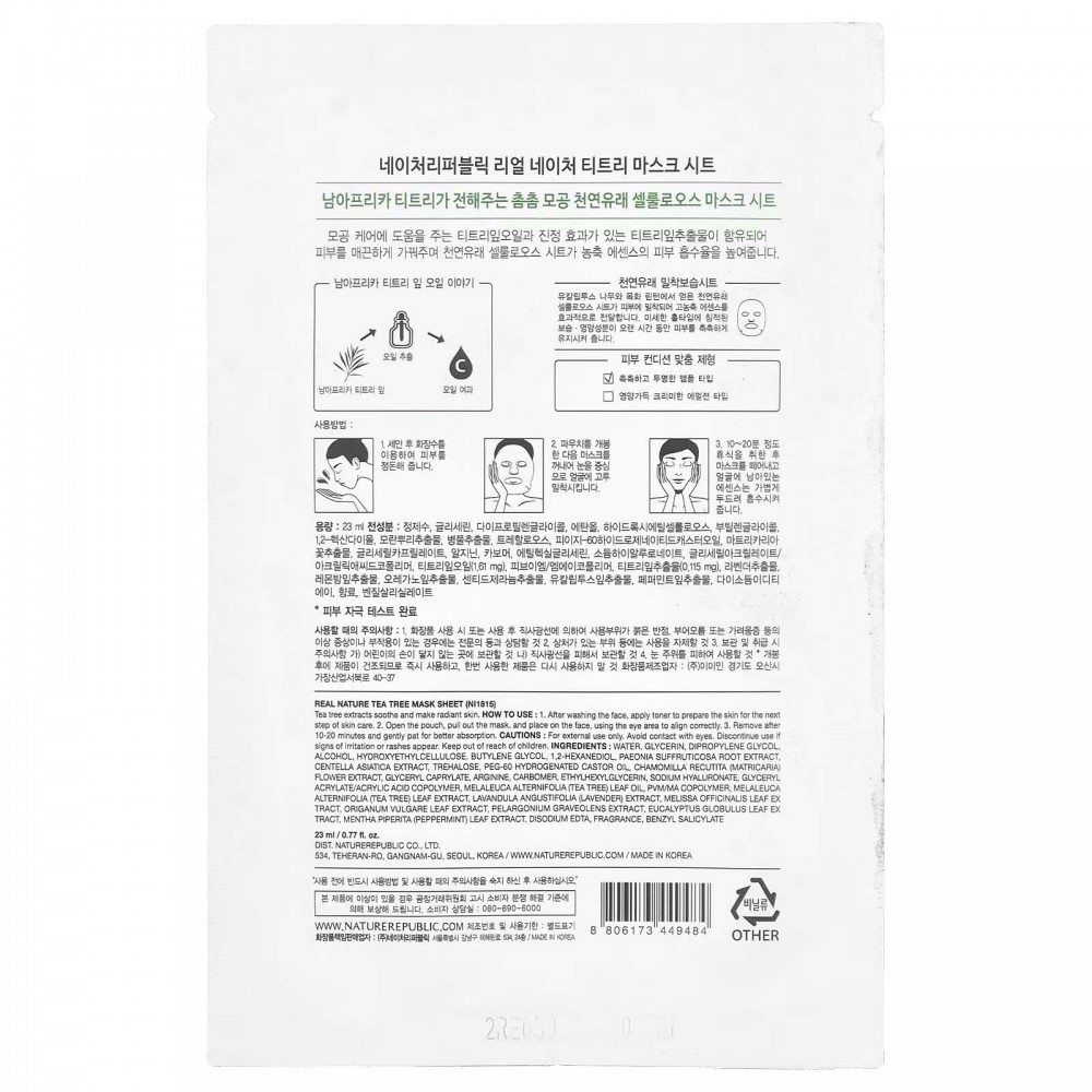 Nature Republic, Тканинна маска від Real Nature Beauty, чайне дерево, 1 шт., 23 мл
