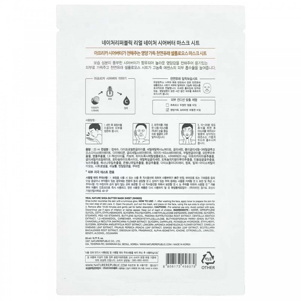 Nature Republic, Тканинна маска від Real Nature Beauty, масло ши, 1 шт., 23 мл
